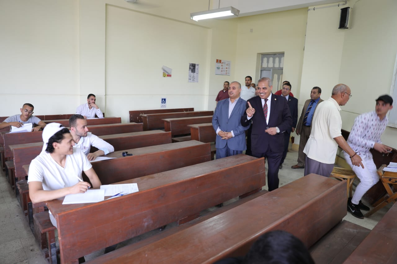 وخلال الجولة قام رئيس الجامعة بتفقد اللجان والاطمئنان على أسئلة الامتحان وأنها من المقرر الذي تم شرحه، واطمأن على تواجد استاذ المادة خلال فترة الامتحان للرد على أي استفسار من الطلاب، بجانب ذلك اطمئن على التواجد الطبي من خلال الإدارة الطبية ومستشفى الطلبه الجامعي بالدراسة.