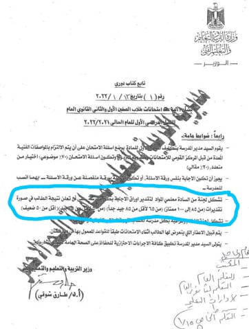 وسادت حالة من الغضب بين أولياء الأمور والطلاب بعد إعلان النتيجة في شكل تقديرات بسبب بما صرح به الدكتور طارق شوقي، وزير التربية والتعليم، على حسابه الرسمي على “فيس بوك” يوم 10 مايو 2022م، والذي جاء نصه: "نتيجة امتحانات الترم الثاني للصفين الاول والثاني الثانوي سوف تكون بالدرجات".