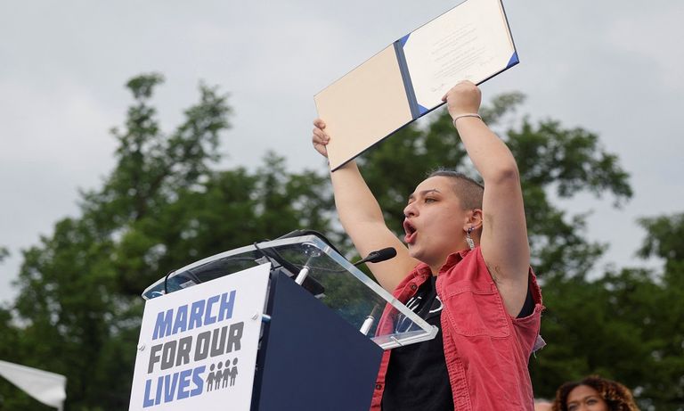 وقالت منظمة "مسيرة من أجل حياتنا"، التي أسَّسها الطلاب الذين نجوا من "مذبحة" عام 2018 في مدرسة ثانوية في باركلاند بولاية فلوريدا: إنها خططت لتنظيم أكثر من 450 تجمعًا السبت، في نيويورك ولوس أنجلوس وشيكاغو، مشيرة إلى أن 40 ألف شخص تجمعوا في ناشونال مول بالقرب من نصب واشنطن التذكاري، تحت أمطار خفيفة.
