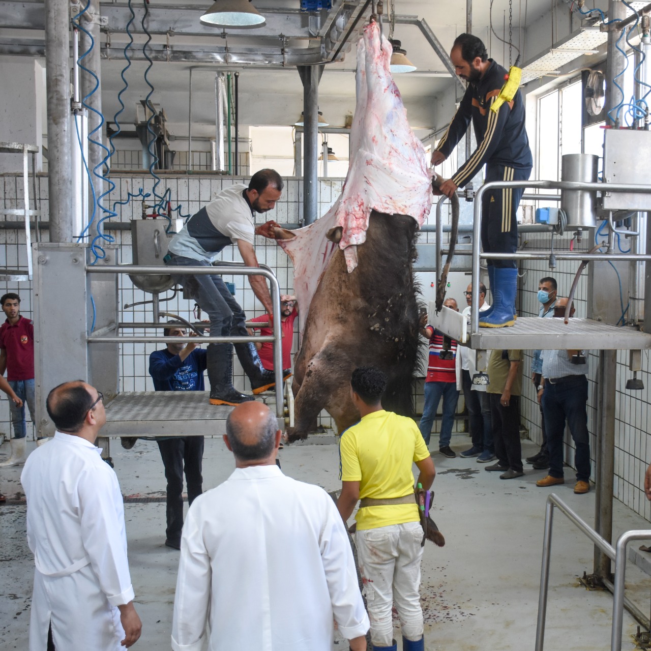 من جانبه؛ أوضح الدكتور يوسف شباط مدير مديرية الطب البيطري، أنه تم تطوير ورفع كفاءة المجزر الآلي بالعامرية وذلك من خلال: إحلال وتجديد خطى الذبيح بعنبر الشمبري والجاموس لتكون طاقة الذبيح 20 رأس/ ساعة لكل خط وإمكانية ذبيح تصل إلى 1000 غنم يوميًا. رفع كفاءة عنبر الضاني حيث أصبح يعمل بطاقة حوالي 1000 رأس/اليوم. وتجهيز عدد 2 ثلاجة تبريد بسعة 100 طن لكل ثلاجة. وتجهيز ثلاجة تجميد سعة 50 طن. وتجهيز معمل خاص بفحص اللحوم بعد ذبحها. ووحدة معالجة ثلاثية للصرف الصحي طاقة 350 م3/اليوم.
