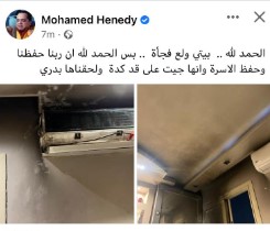 أعلن الفنان محمد هنيدي عن نشوب حريق بشكل مفاجئ في منزله، وذلك من خلال حسابه الشخصي عبر موقع التواصل الاجتماعي "فيس بوك".