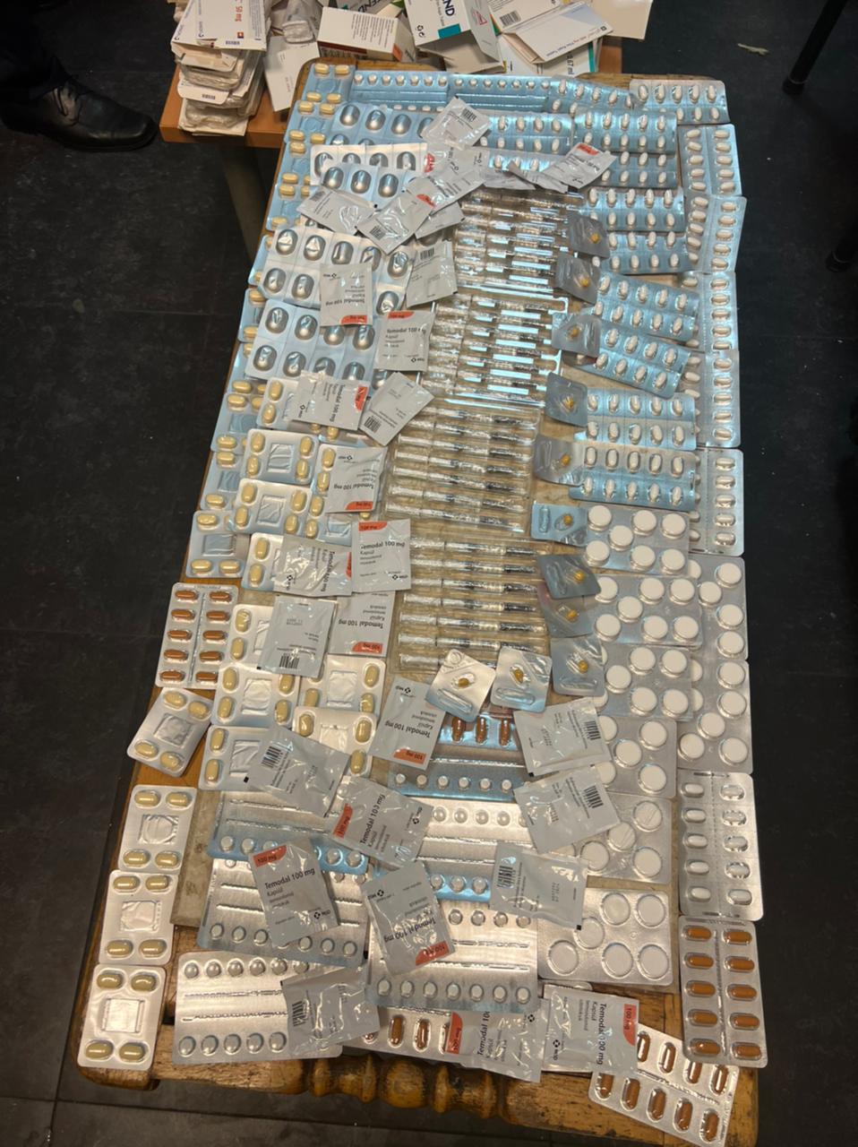 وبتفتيش حقائبها بواسطة محمود سعد مأمور الجمرك وأحمد الشريف رئيس القسم تلاحظ لهما وجود ما يشتبه أن يكون شرائط دوائية داخل الحقائب، قام أحمد فؤاد حامد مدير الحركة المشرف على صالة الوصول بمبنى الركاب رقم ٣ بتكليف عماد سيد حسين مأمور الجمرك بتفتيش الحقائب يدويًّا مما أسفر عن وجود كمية من الشرائط الدوائية أقر أحد الراكبين أنها تخصه دون الآخر قام أحمد علي السيد مدير إدارة الجمرك بمناظرة جوازي سفر الراكبين والمضبوطات التي بلغ عددها ١٤٣ شريط دوائي خاص بعلاج السرطان والأمراض المناعية.