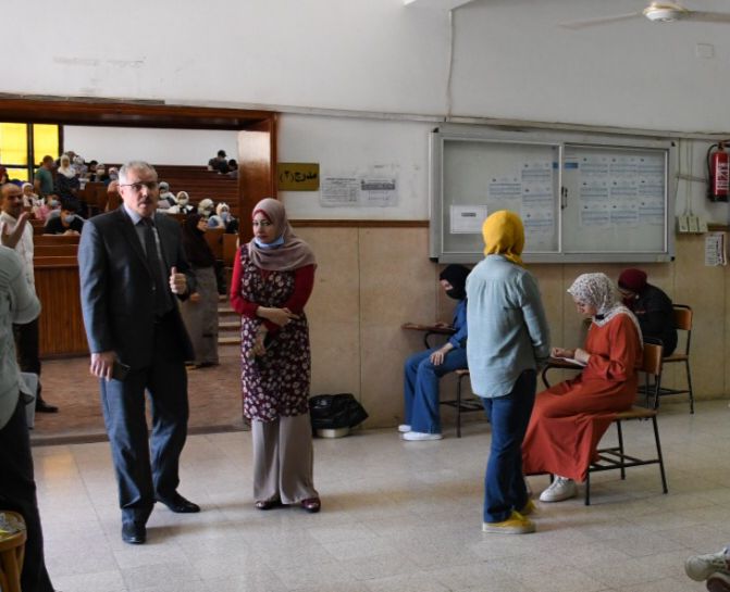 جاء ذلك أثناء تفقد رئيس الجامعة اليوم الثلاثاء الموافق الـ ١٤ من شهر يونية الجاري للجان الإمتحانية بكلية التجارة، وكان فى إستقبال سيادته وكيل الكلية لشئون التعليم والطلاب الدكتورة هدى عبد الله والدكتورة سلوى فراج رئيس قسم العلوم السياسية والدكتور محمد أبو العلا منسق شعبه اللغه الإنجليزية.