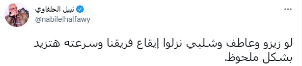 وقال الحلفاوي "لو زيزو وعاطف وشلبي نزلوا إيقاع فريقنا وسرعته هتزيد بشكل ملحوظ."