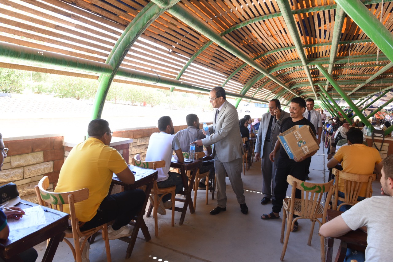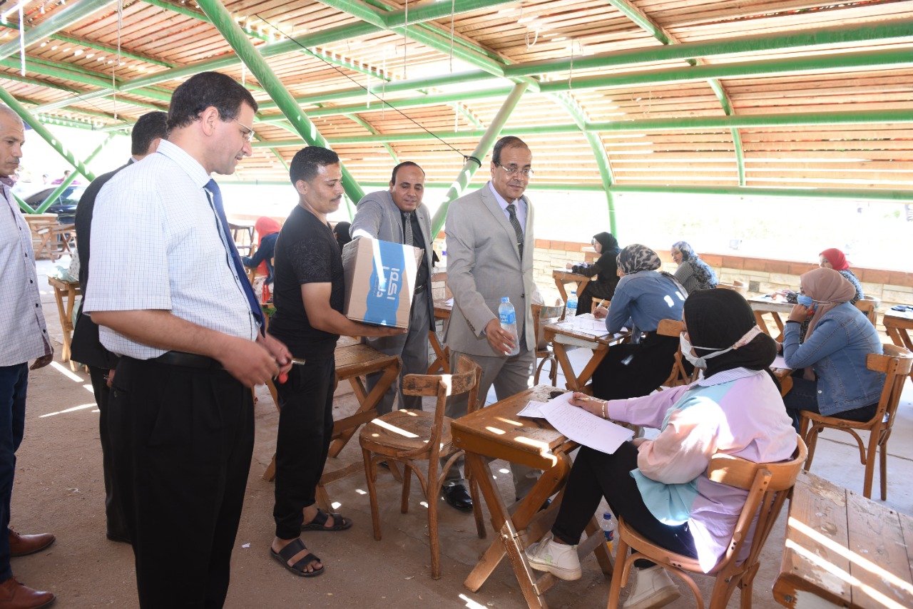 رئيس جامعة سوهاج يتابع انتظام الامتحانات ويوزع زجاجات المياه على الطلاب |صور