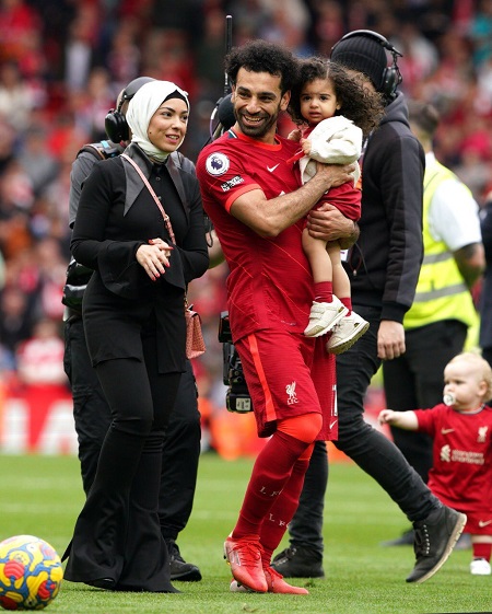وظهرت زوجته ماجي مع طفلتيه مكة وكيان وشاركنه الاحتفال في أرض الملعب، وخلال ظهورها القصير خطفت إعجاب المتابعين الذين أشادوا بإطلالتها التي اختارتها باللون الأسود بالكامل مع حجاب باللون الأبيض.