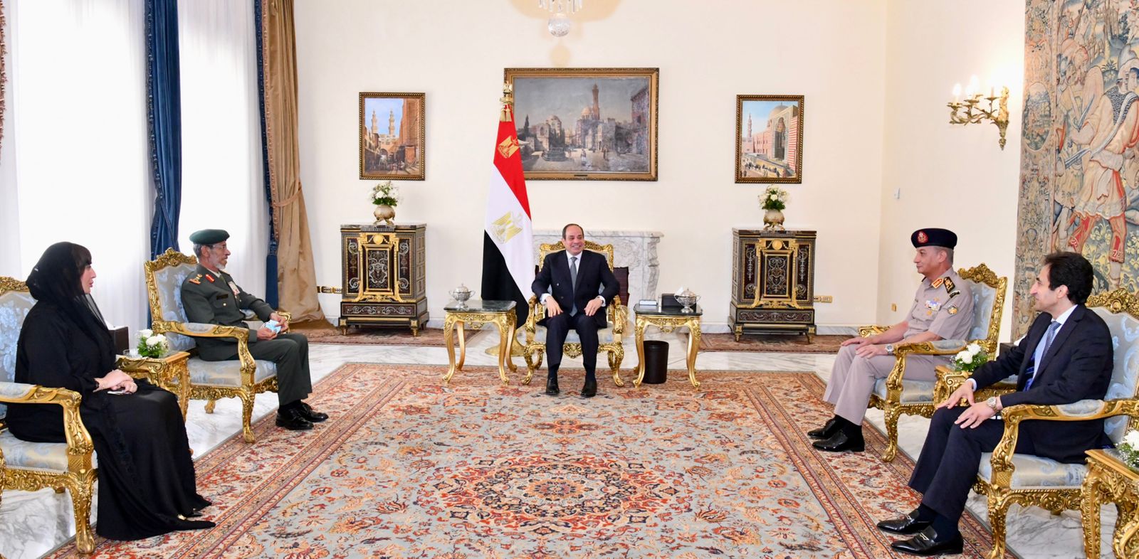 استقبل الرئيس عبد الفتاح السيسي اليوم الفريق الركن حمد محمد ثاني الرميثي، رئيس أركان القوات المسلحة الإماراتية، وذلك بحضور الفريق أول محمد زكي وزير الدفاع والإنتاج الحربي، إلى جانب السفيرة مريم الكعبي سفيرة دولة الإمارات العربية المتحدة بالقاهرة.