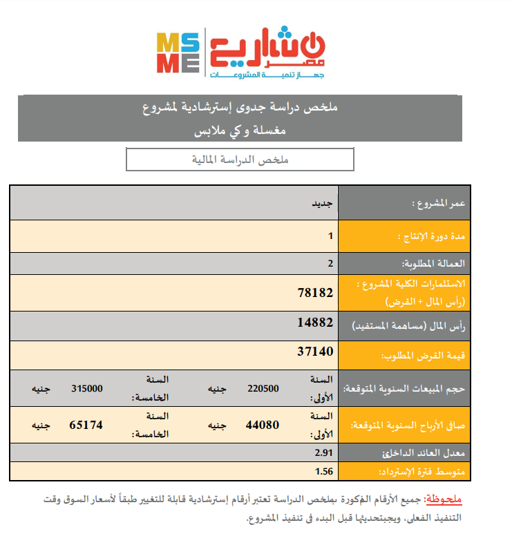 وتستعرض "فيتو" كافة التفاصيل المتعلقة بدراسة جدوى استرشادية لمشروع مغسله وكي ملابس والتي أعدها جهاز تنمية المشروعات الصغيرة والمتوسطة خلال السطور التالية: