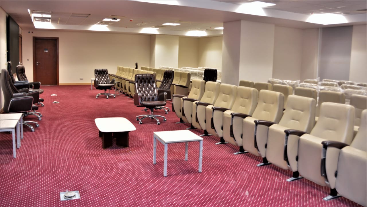 يشمل الدور الأرضي مجموعة من الخدمات تتمثل في مُصلى للرجال وآخر للسيدات، وكافيتريا، و5 قاعات للاجتماعات بالإضافة إلى 2 قاعة لجان تسع كل منهم 41 فردًا.