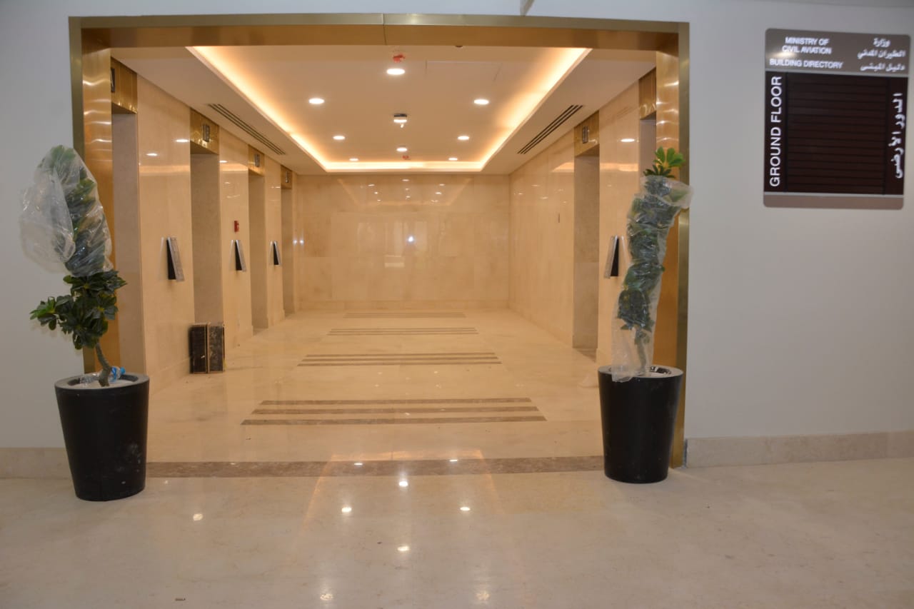 وأوضح أيمن محمود مصطفى مدير الشؤون الهندسية بوزارة الطيران، أن مبنى الوزارة يضم 7 أدوار وله مدخلين رئيسين وبه 2 مصلى حريمي ورجالي، مضيفا "يحيط بنا وزارة السياحة والتخطيط والاتصالات في الحي الحكومي.