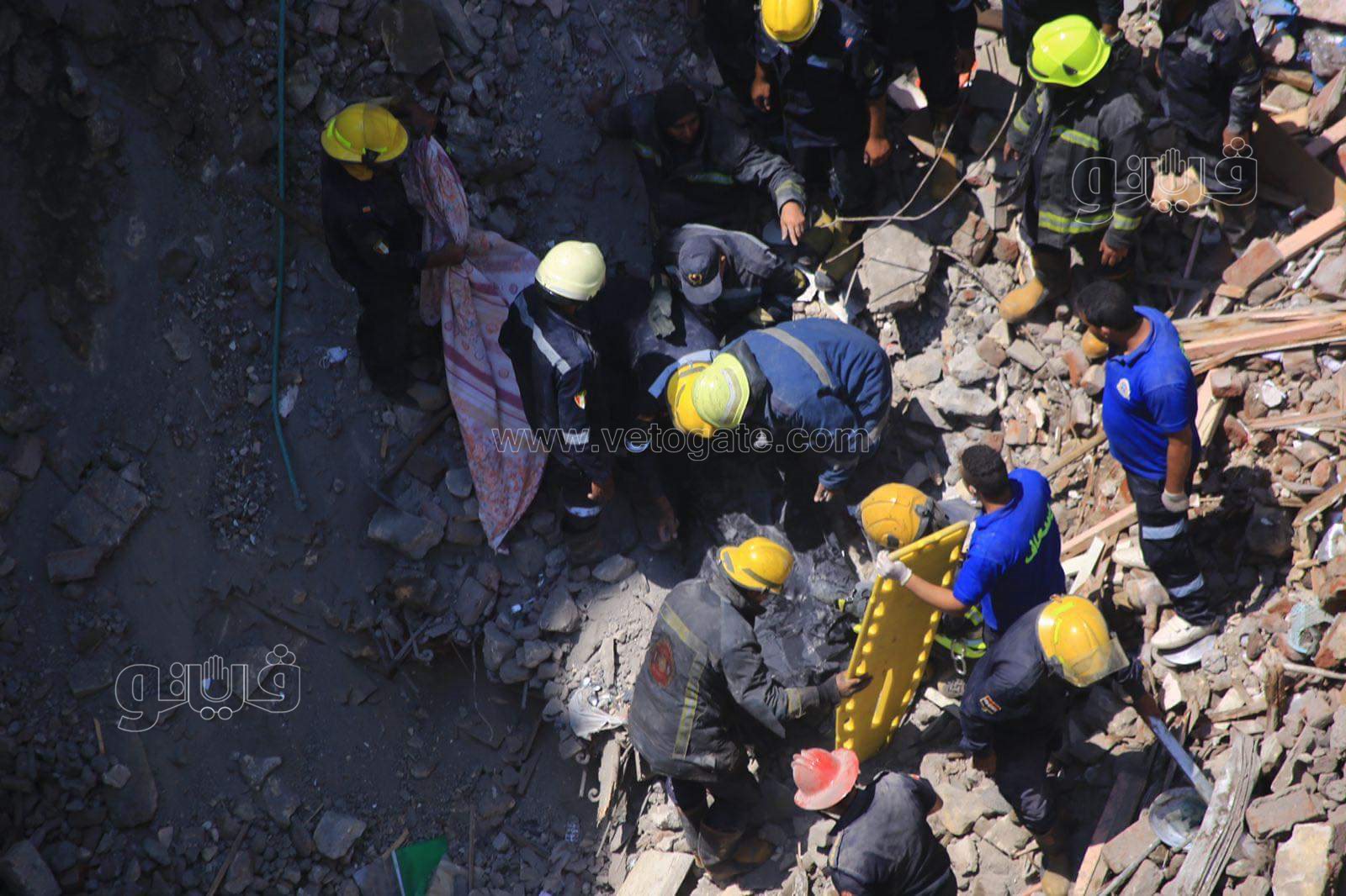انتشال الجثة الثانية من أسفل عقار الظاهر المنهار