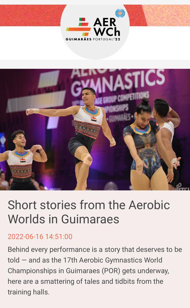 أشاد الاتحاد الدولي للجمباز عبر موقعه الرسمي، بمنتخب مصر المشارك حاليا في منافسات بطولة العالم للأيروبيك، المقامة حاليا في البرتغال وتستمر حتى يوم 19 يونيو الجاري،