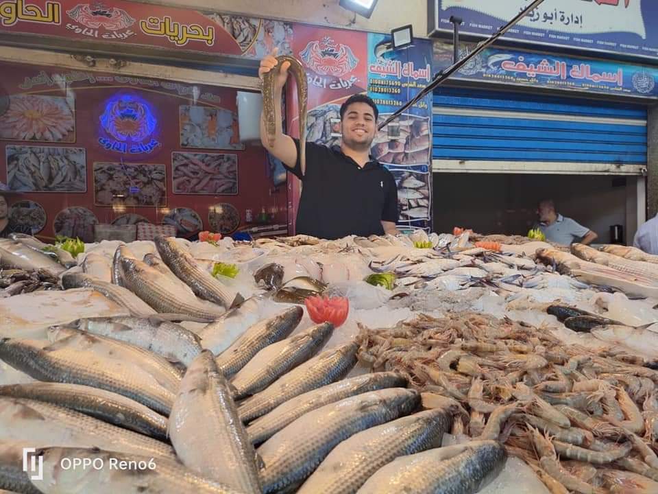 واستكمل: هناك أماكن مخصصة في السوق للأسر والأفراد لتناول الأسماك والمأكولات البحرية بعد تسويتها مباشرة، ومن يرغب في تغليف الطعام بعد تسويته ليتناوله في منزله هو وأسرته متاح أيضا