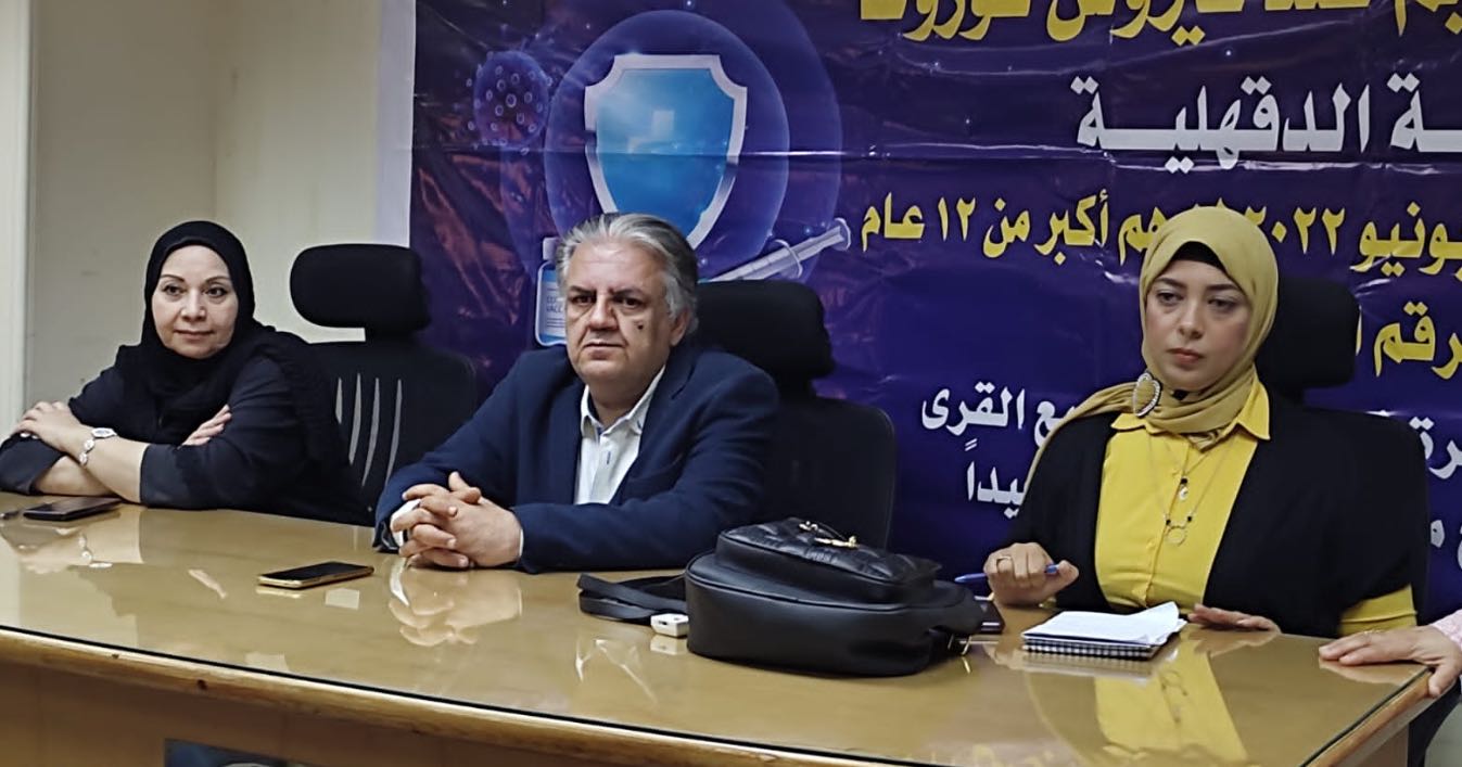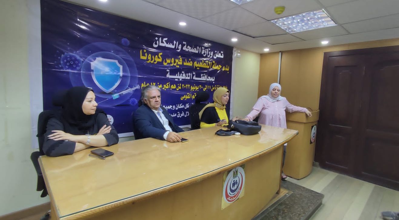 وذلك لمناقشة ماتم انجازه من أعمال بحملة طرق الأبواب والتي بدأت فعاليتها بمحافظة الدقهلية من 15 يونيو وتستمر حتى 30 يونيو 2022 م لمن هم أكبر من 12 عاما عن طريق فرق مدربة ومنتشرة في كافة القرى والنجوع والتوابع.