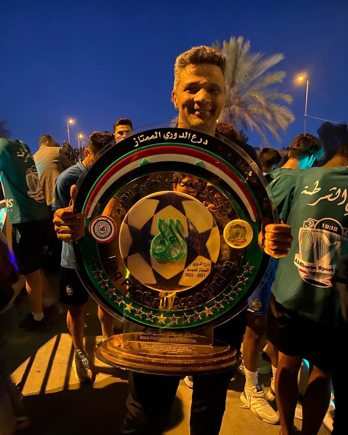 احتفل مدربنا المصري مؤمن سليمان المدير الفني لنادي الشرطة العراقي بالتتويج بدرعِ الدوري المُمتاز بالعراق للموسمِ ٢٠٢٢/٢٠٢١.