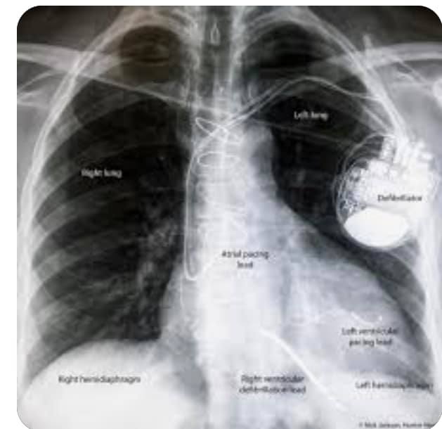 وقال جمال شعبان "رسم القلب بيوضح لسداد في حزمة الكهربا اليسري وكفاءة البطين الأيسر أقل من ٣٠%.. الحالات دي بنزرع فيها الجهاز الكهربي الثلاثي دا CRTD، الجهاز دا بإذن الله معجزة، زي مانتم شايفين في الصورة بطارية طالع منها ٣ كابلات دقيقة"