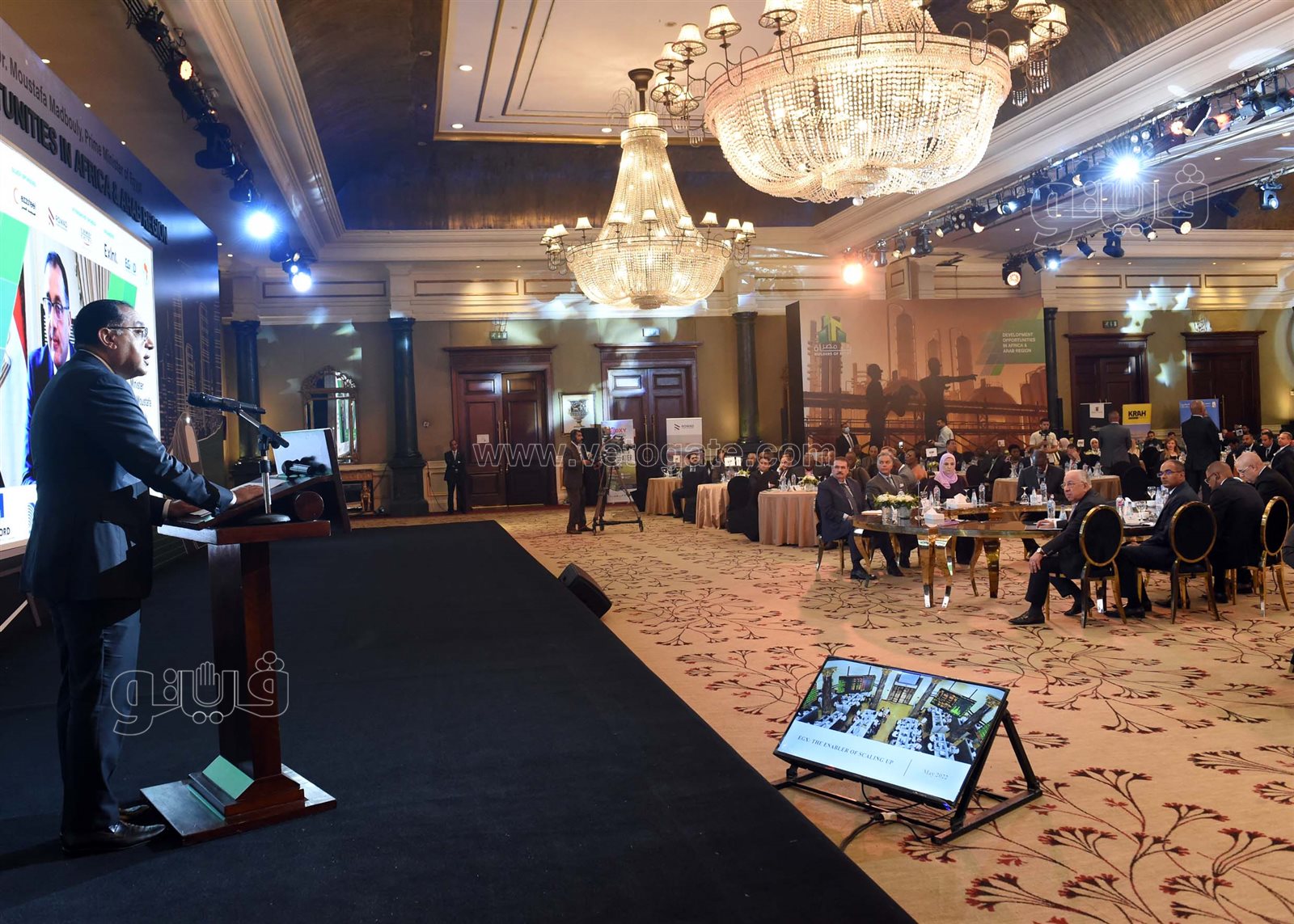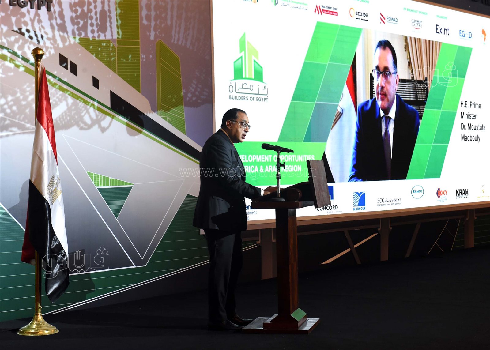شارك الدكتور مصطفى مدبولي، رئيس مجلس الوزراء، صباح اليوم، فى فعاليات افتتاح الدورة السابعة لملتقى "بناة مصر"، التي تقام تحت عنوان: "فرص التنمية والتمويل بأفريقيا والدول العربية في ضوء المتغيرات العالمية"، وذلك بحضور عدد من الوزراء، والسفراء، ورؤساء الهيئات، ووفود ممثلي الحكومات والاتحادات ومنظمات الأعمال من عدد من الدول الأفريقية والعربية.