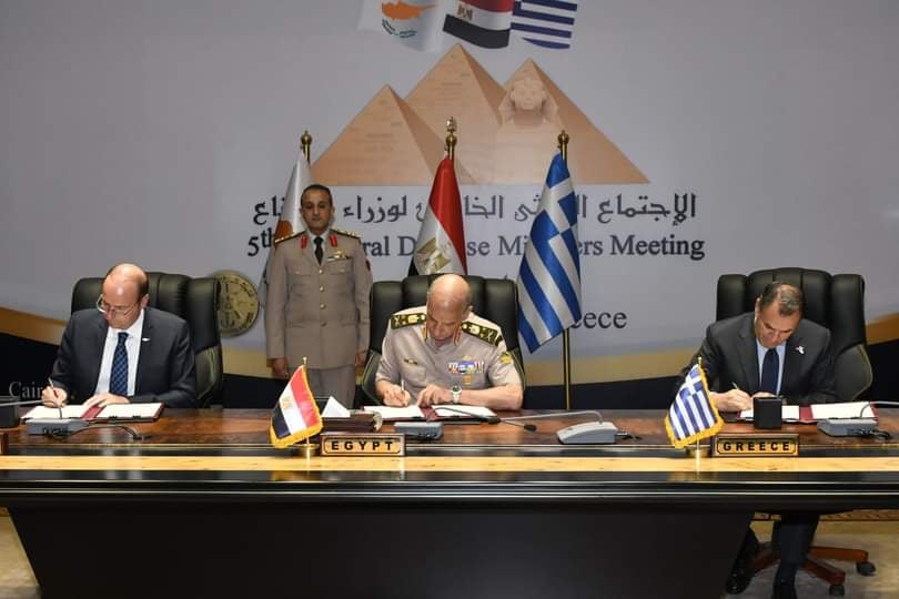 استضافت جمهورية مصر العربية الاجتماع الثلاثي الخامس لوزراء دفاع مصر وقبرص واليونان، لبحث علاقات التعاون العسكري المشترك، بحضور عدد من قادة القوات المسلحة المصرية والقبرصية واليونانية، حيث تناول الاجتماع عدد من الموضوعات والقضايا التي تمس المصالح المشتركة للدول الثلاث.