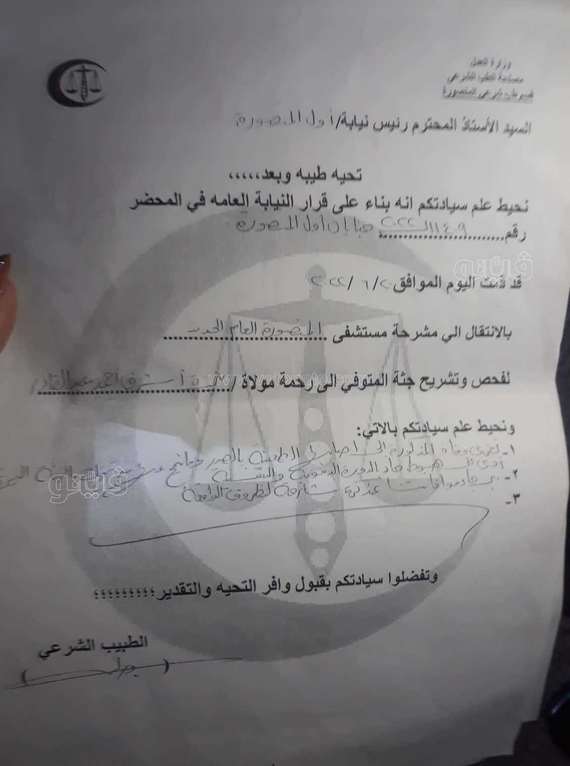 ننشر تقرير الطب الشرعى لطالبة جامعة المنصورة نيرة أشرف | مستند