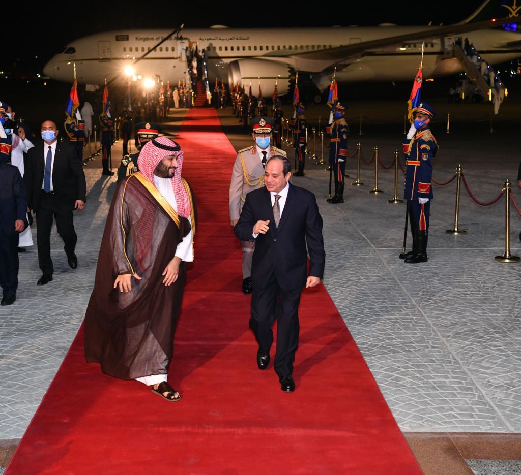 واستقبل الرئيس عبد الفتاح السيسي مساء أمس بمطار القاهرة صاحب السمو الملكي الأمير محمد بن سلمان بن عبدالعزيز ولي عهد المملكة العربية السعودية الشقيقة الذي يحل ضيفًا عزيزًا على وطنه الثانى مصر في زيارة تستغرق يومين".