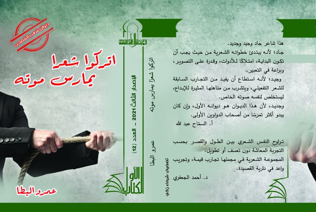 صدر حديثًا عن المجلس الأعلى للثقافة، بأمانة الدكتور هشام عزمى، ضمن سلسلة الكتاب الأول التابعة للإدارة المركزية للشعب واللجان الثقافية، برئاسة الكاتب محمد عبد الحافظ ناصف، ديوان شعري بالفصحى معنون بـ "اتركوا شعرا يمارس موته" للشاعر عمرو البطا..
