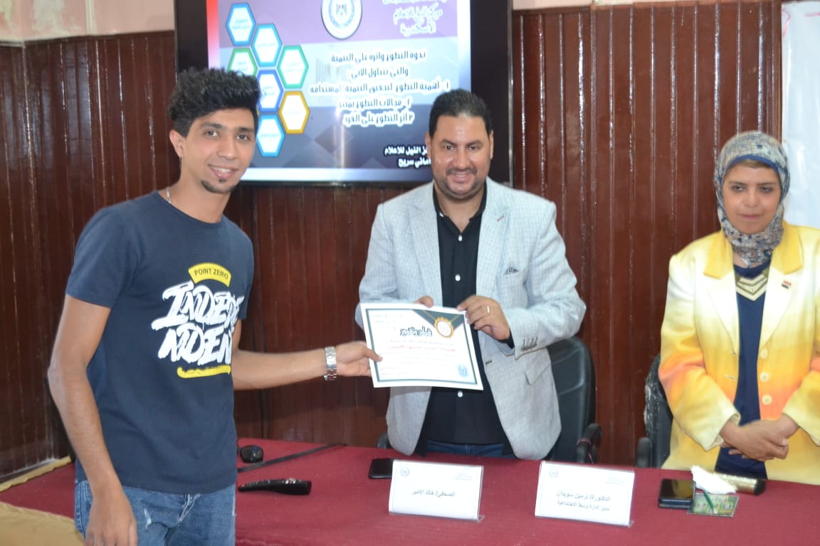 نظم مركز النيل للاعلام بالاسكندرية، برئاسة أمانى سريح، ندوة بعنوان "اثر التطوع على التنمية "، بمشاركة ممثلين عن المجتمع المدني والمؤسسات الحكومية والصحفيين، وبالتعاون مع جمعية خليك ايجابي.