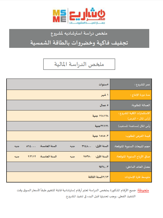 وتستعرض "فيتو" كافة التفاصيل المتعلقة بدراسة جدوى استرشادية مشروع تجفيف فاكهة وخضروات بالطاقة الشمسية والتي أعدها جهاز تنمية المشروعات الصغيرة والمتوسطة خلال السطور التالية: