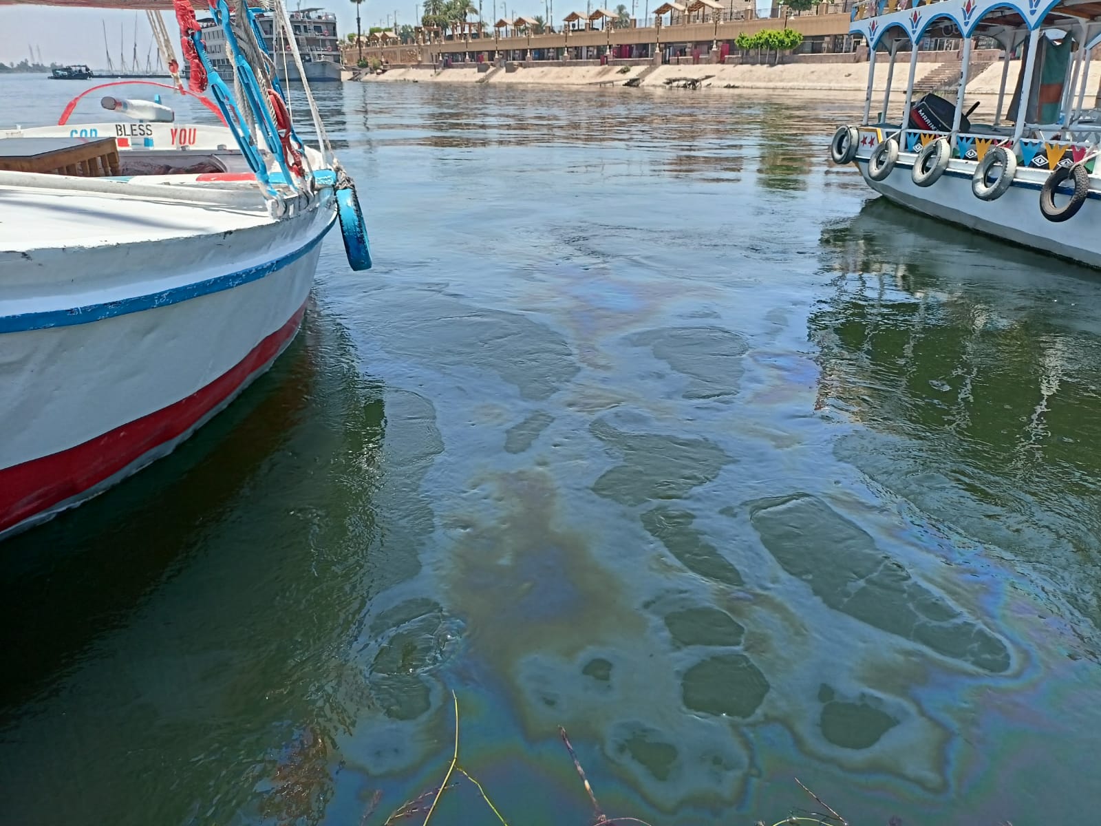 ظهر منذ قليل بقعة زيت سولار كبيرة في نهر النيل أمام معبد الأقصر تسربت أحد الفنادق العائمة، مما أثار غضب مواطني الأقصر.