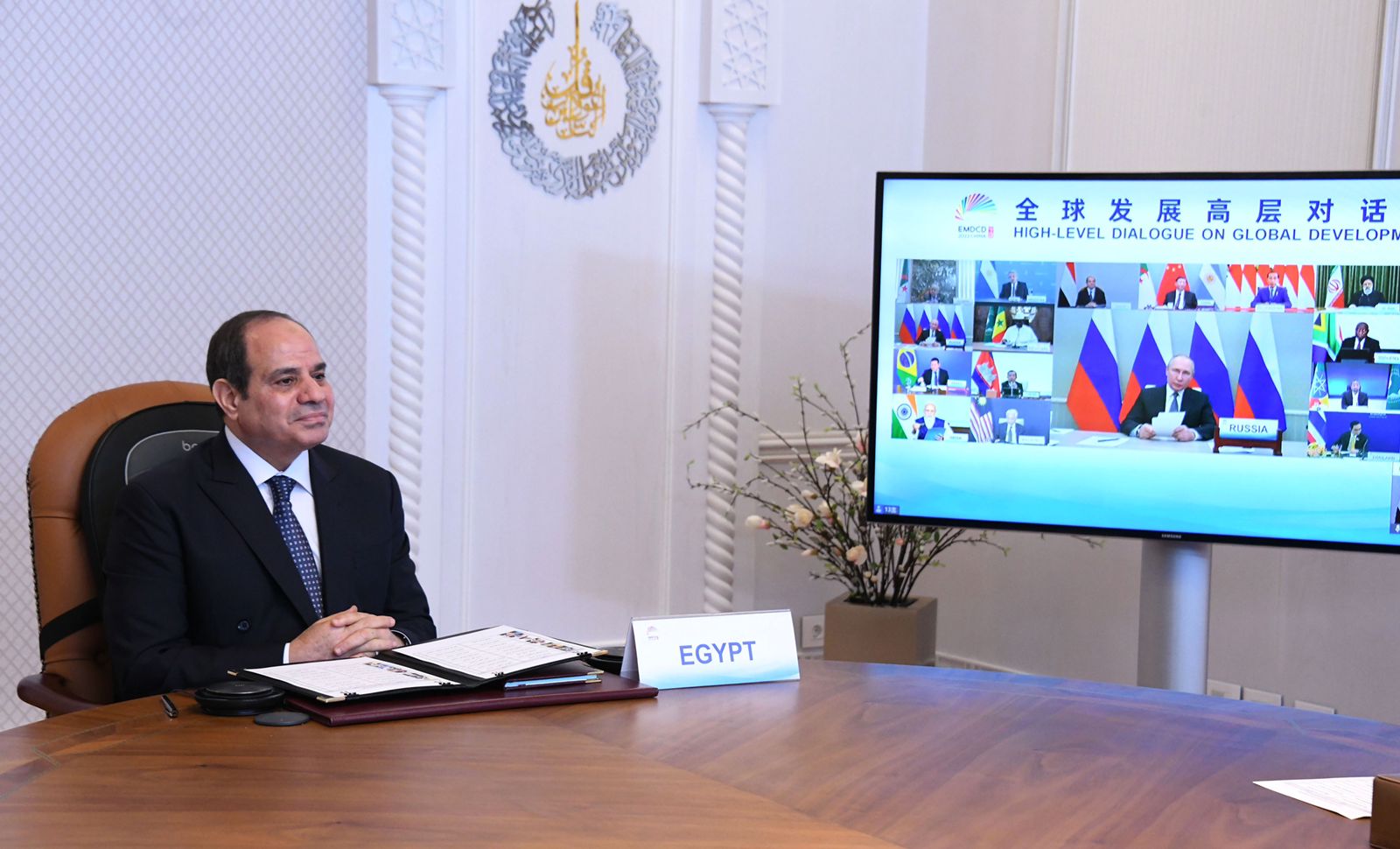شارك الرئيس عبد الفتاح السيسي بعد ظهر اليوم الجمعة عبر الفيديو كونفرانس في جلسة الحوار رفيعة المستوى للتنمية العالمية في إطار "البريكس بلس"، وذلك تحت رئاسة الرئيس الصيني شي جين بينج، الرئيس الحالي لتجمع دول البريكس، ومشاركة لفيف من رؤساء الدول والحكومات".