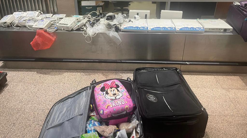 وأضافت المصادر أنه بتفتيش حقائبة على جهاز الفحص بالأشعة بواسطة عمرو غزال مأمور الجمرك، تلاحظ له وجود ما يشتبه أن يكون أجهزة متشابهة، وكلف سامح علي زاهر مدير الحركة المشرف على صالة الوصول بمبنى الركاب رقم ٣، فادي نبيل مأمور الجمرك بتفتيش حقائب الراكبة يدويا مما أسفر عن وجود ٢٣ جهازًا طبيًّا مستعمل محظور دخولهم مغلفين بالبلاستيك وسط الملابس بالحقائب.