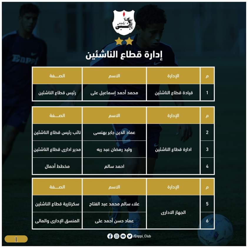 أعتمد مجلس إدارة نادى إنبى، تشكيل الأجهزة الفنية والإدارية والطبية لقطاع الناشئين بنادى إنبى للموسم الرياضى 2023/2022.