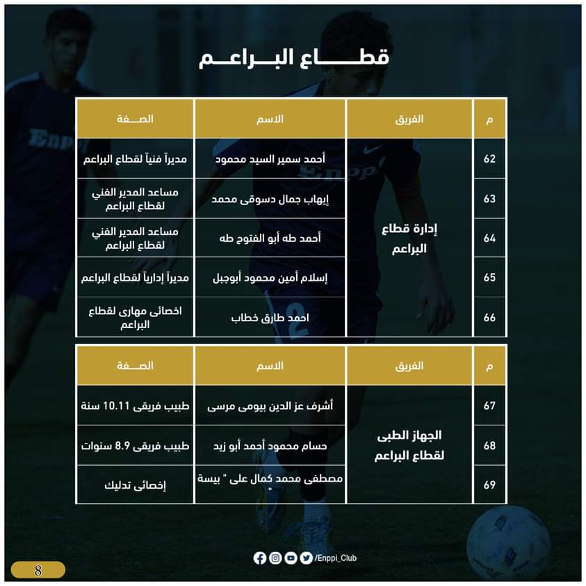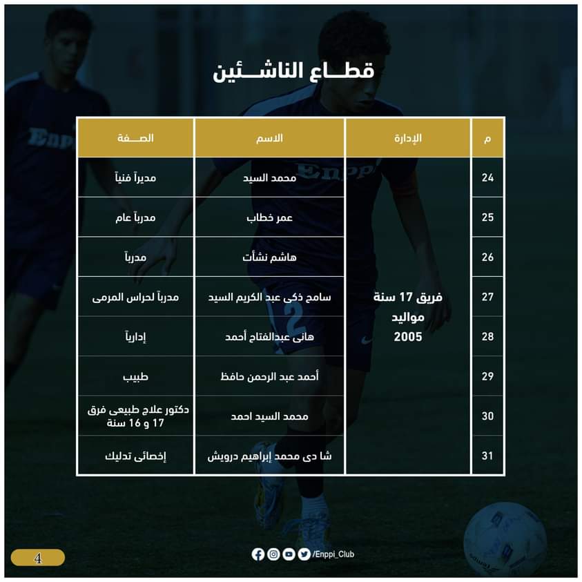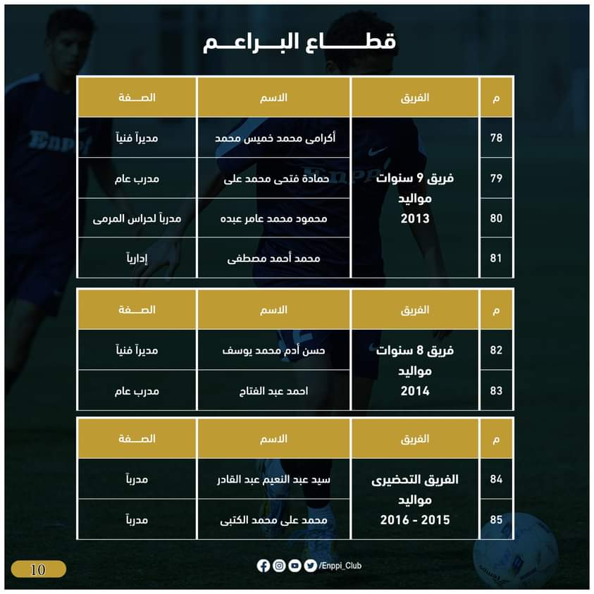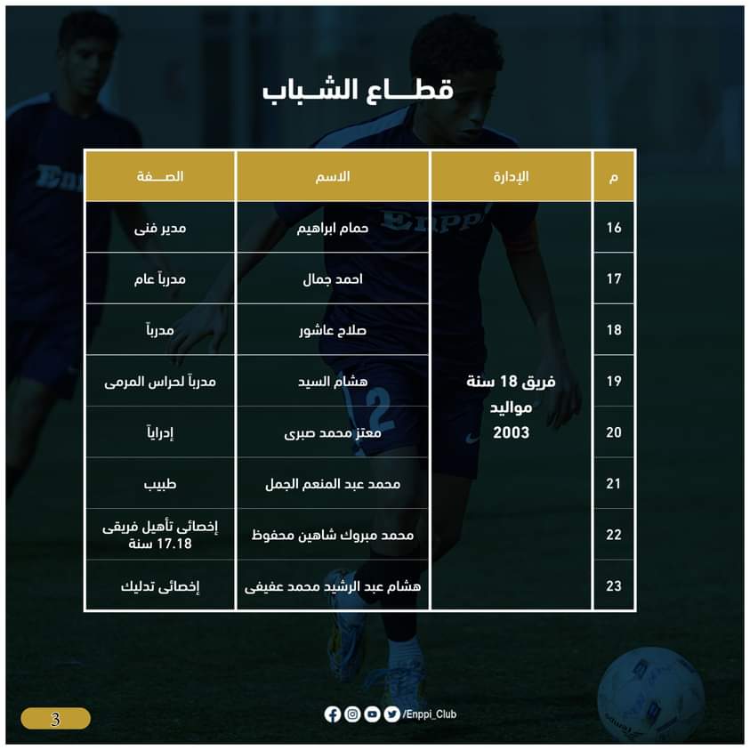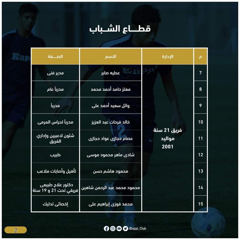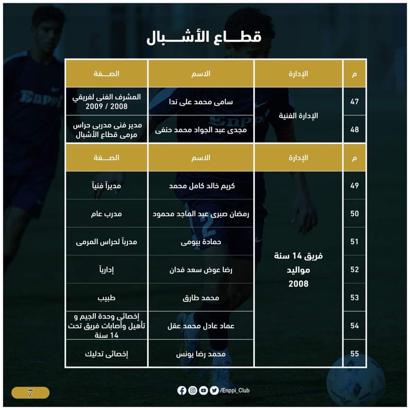 ويأتى هذا بعد مناقشة لجنة الكرة برئاسة أيمن الشريعى وعضوية دكتور شريف ابو الغيط عضو مجلس الادارة وكابتن عبد الناصر محمد مدير الكرة بالفريق الاول وطارق عبدالله المدرب العام للفريق الاول،محمد اسماعيل رئيس قطاع الناشئين، لبحث وإختيار أفضل العناصر والكفاءات الفنية لقيادة فرق القطاع للموسم الجديد، بالإضافة إلى بحث احتياجات فرق القطاع وتطور المستوى والأداء بجانب تفريغ عدد كبير من اللاعبين الموهوبين للمنتخبات الوطنية والفريق الأول بنادى إنبى خلال الموسم القادم، لتقوم اللجنة بعد مناقشتها بصفتها الفنية بتقديمها لمجلس ادارة النادي ليتم اعتمادها.