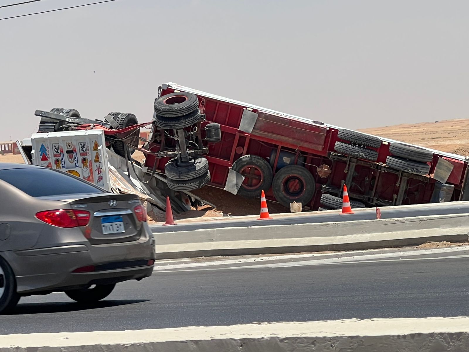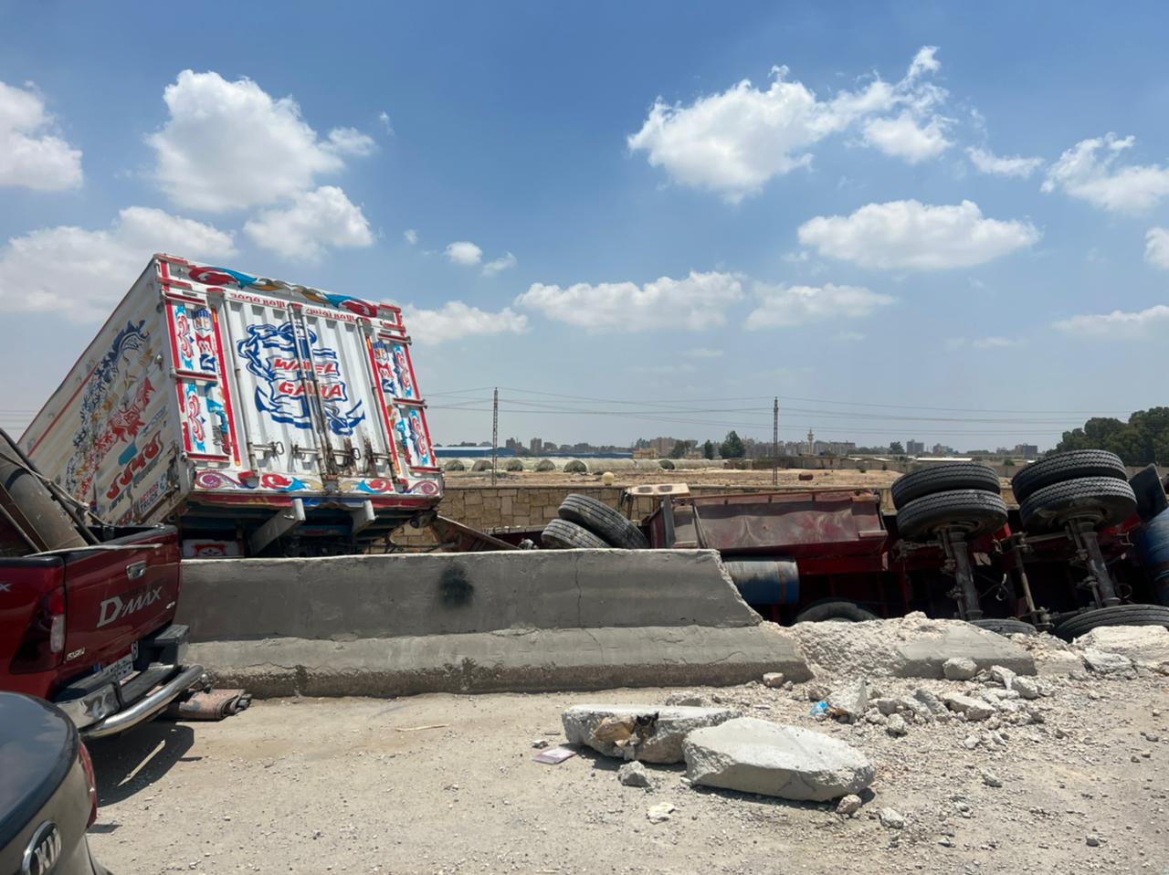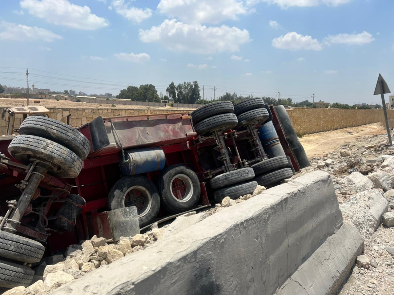 انقلاب سيارة نقل بالإسماعيلية وإصابة سائقها|صور