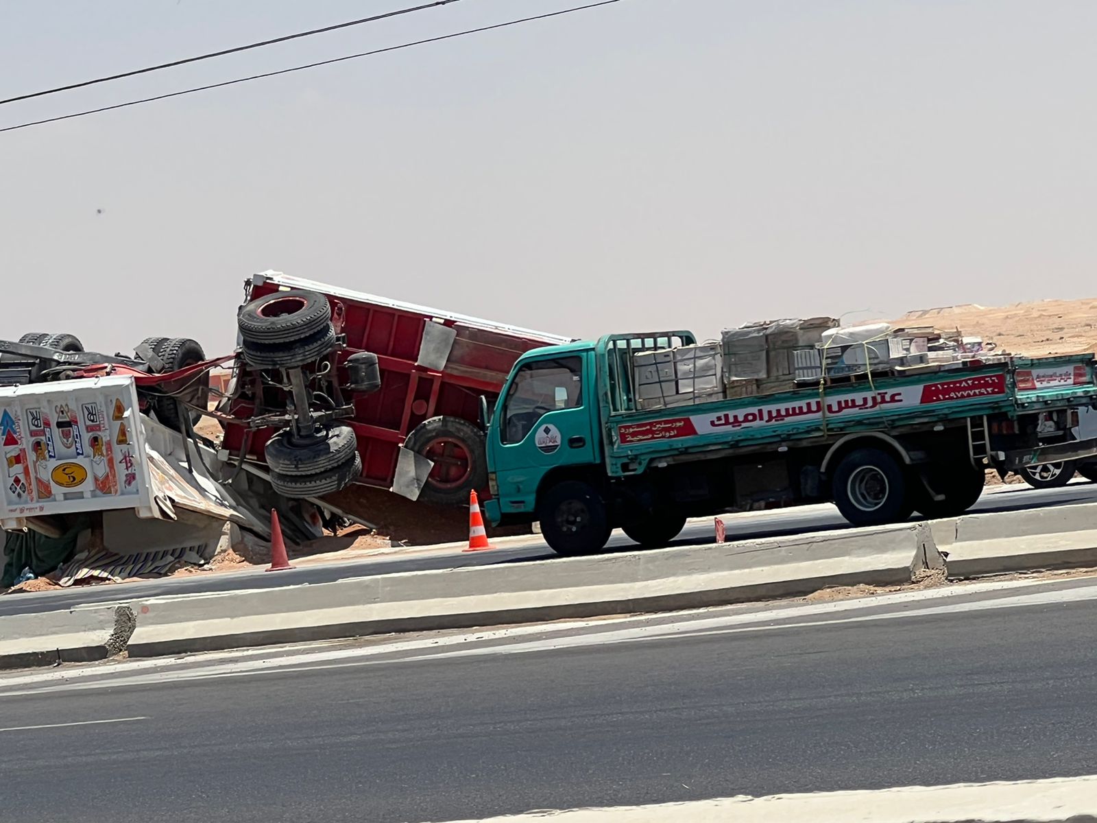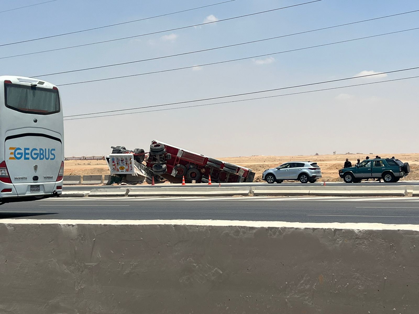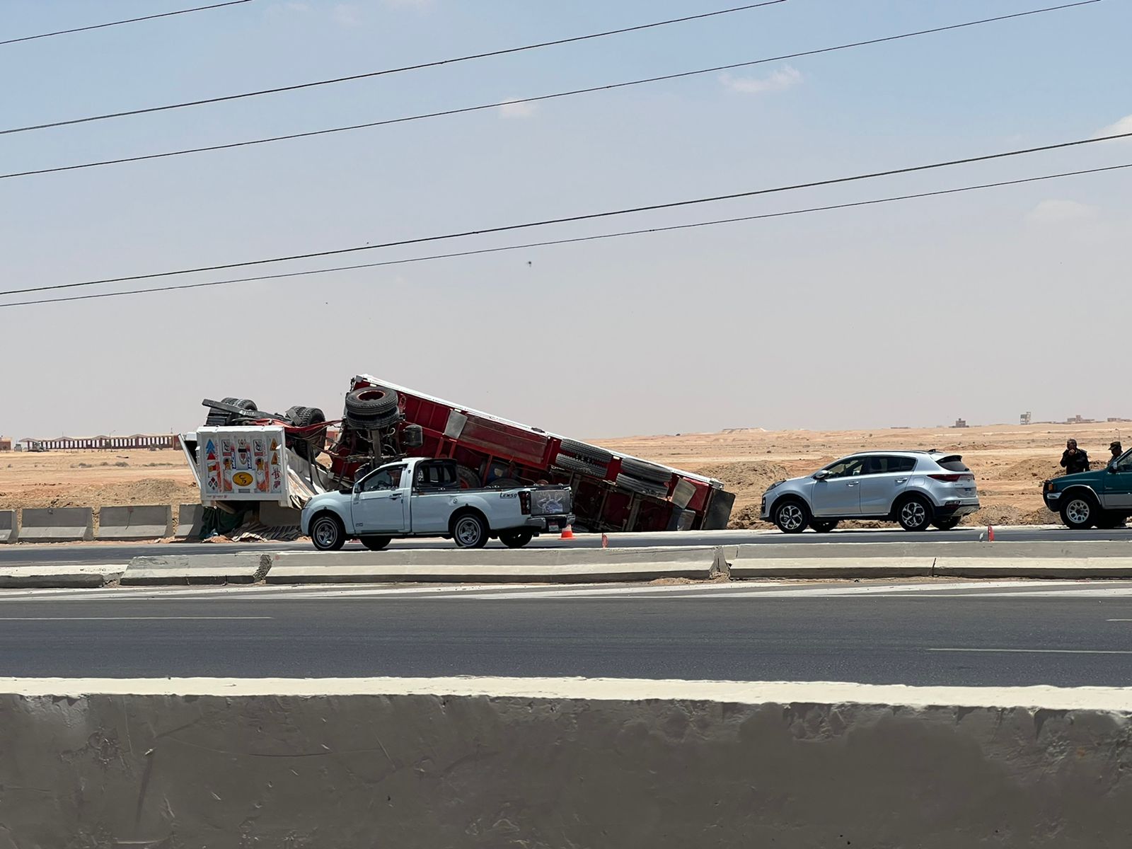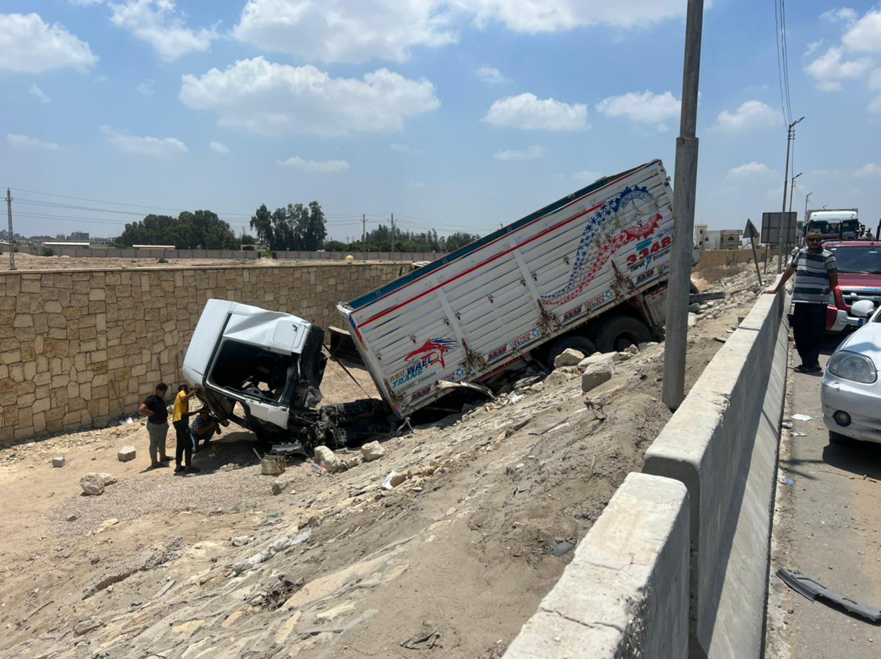 انقلاب سيارة نقل بالإسماعيلية وإصابة سائقها|صور