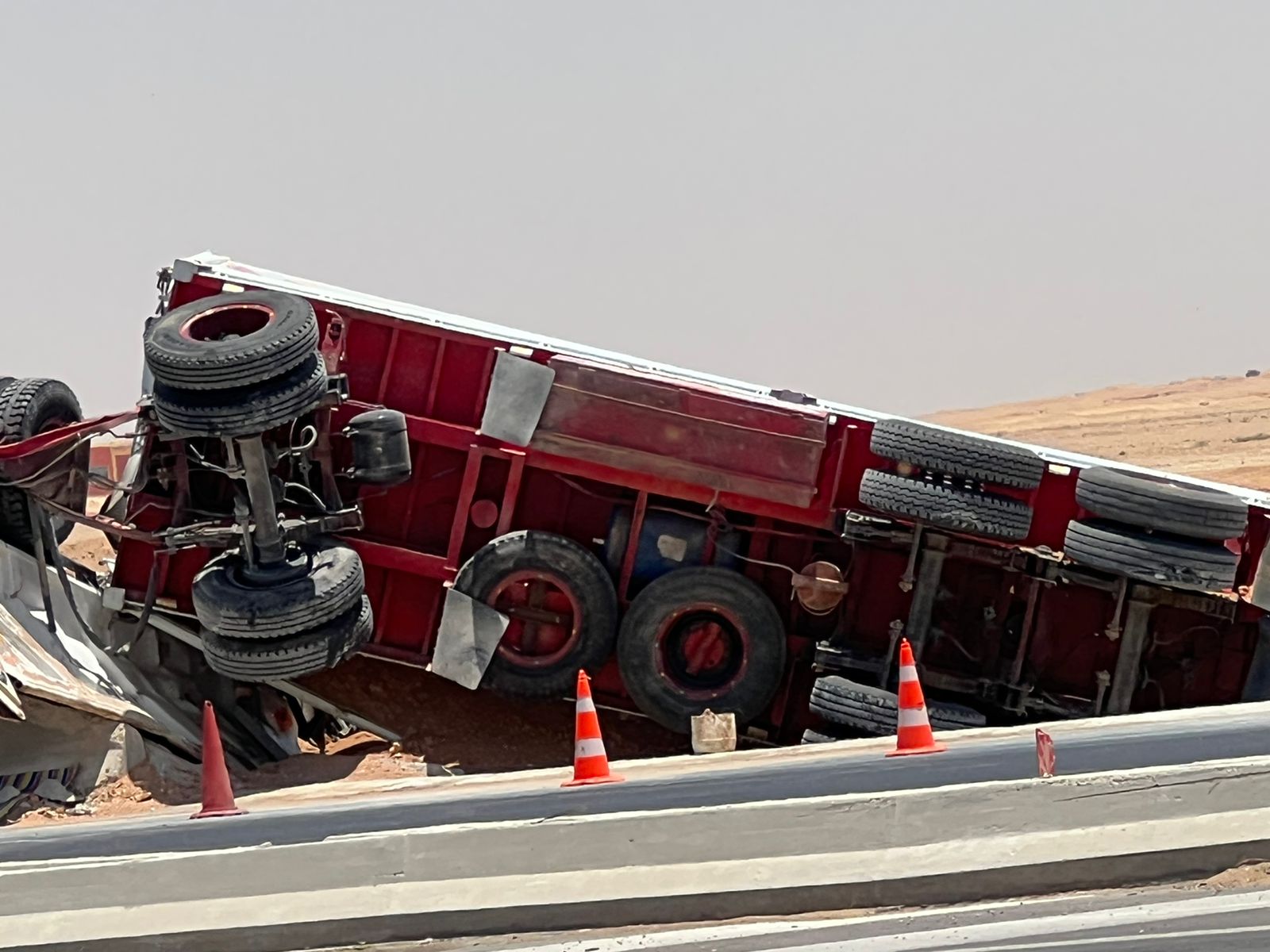 شهد مدخل محافظة الإسماعيلية، اتجاه بورسعيد القاهرة قبل قليل حادث انقلاب سيارة نقل ثقيل وذلك بعد أن انفجار وقع بإطارين من اطاراتها.