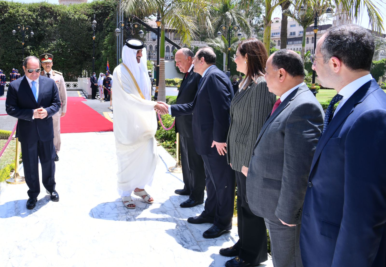 استقبل الرئيس عبد الفتاح السيسي اليوم بقصر الاتحادية سمو الأمير تميم بن حمد آل ثاني، أمير دولة قطر، حيث أقيمت مراسم الاستقبال الرسمي وتم عزف السلامين الوطنيين واستعراض حرس الشرف.