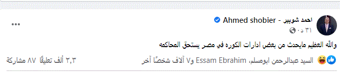 وقال الإعلامي أحمد شوبير: “والله العظيم ما يحدث من بعض إدارات الكورة في مصر يستحق المحاكمة”.