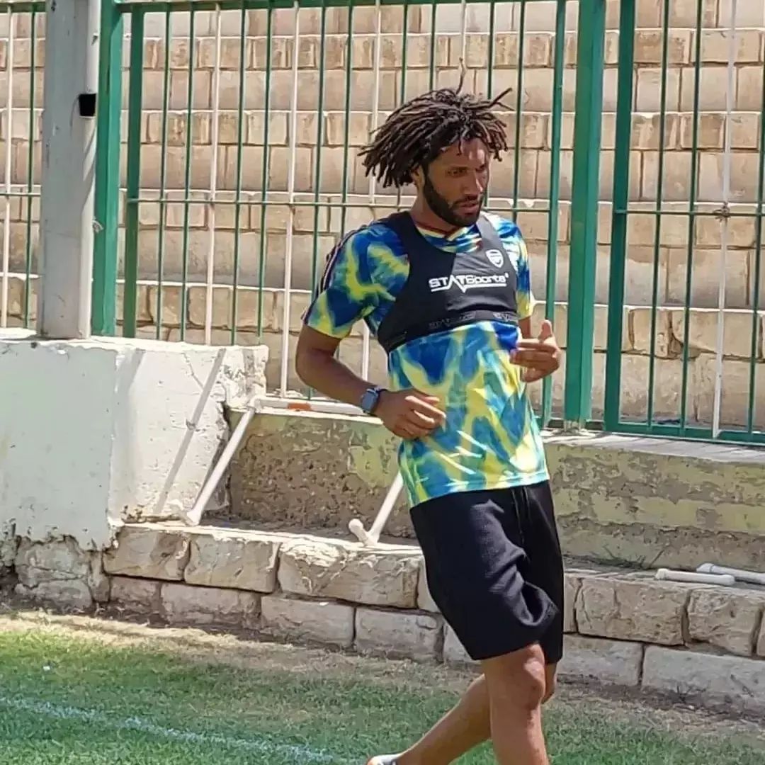 وأدى محمد النني بعض التدريبات المنفردة في الملعب.