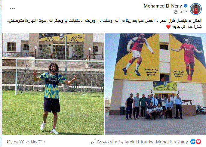 وكتب محمد النني عبر صفحته الرسمية بموقع التواصل الاجتماعي فيسبوك: “المكان ده هيفضل طول العمر له الفضل عليا بعد ربنا في اللي وصلت له.. وفرحتي باستقبالكم ليا وحبكم اللي شوفته النهاردة متتوصفش.. شكرا علي كل حاجة”.