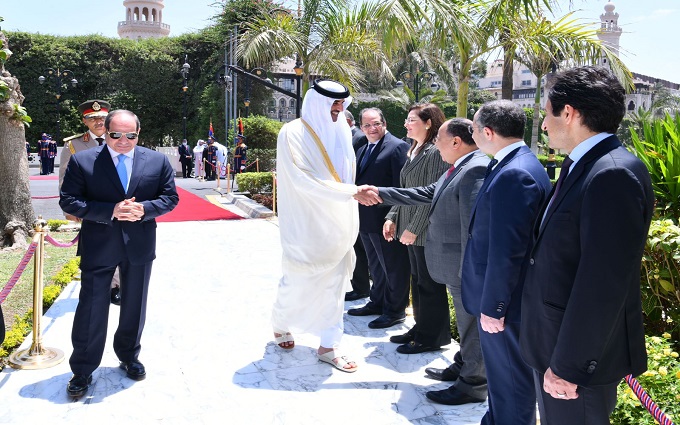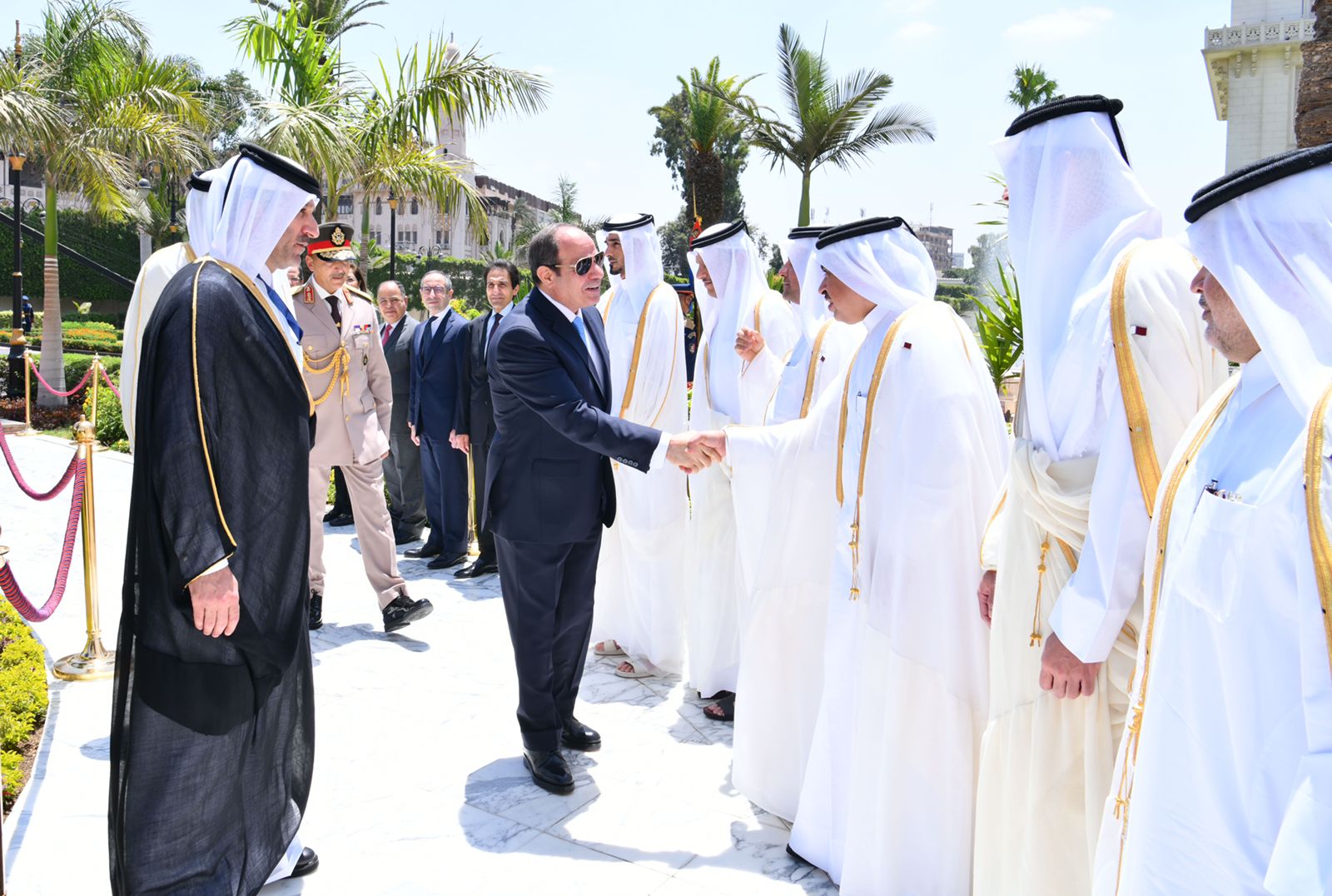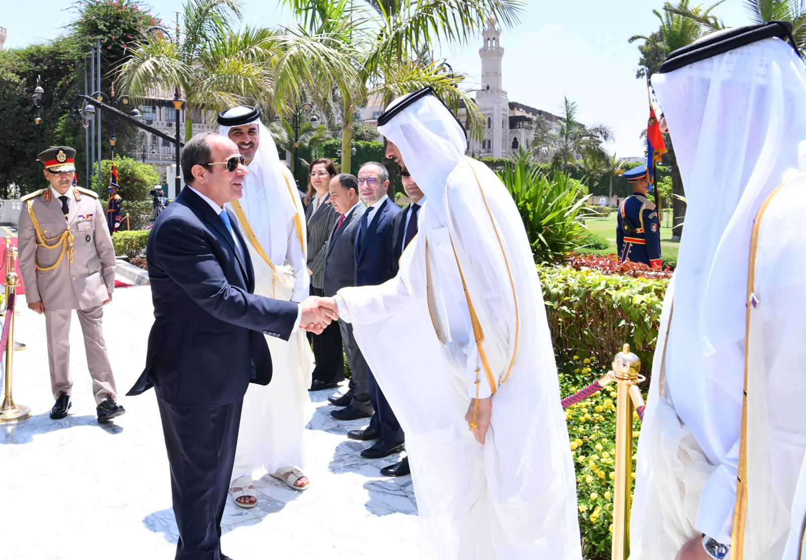 استقبل الرئيس عبد الفتاح السيسي اليوم بقصر الاتحادية سمو الأمير تميم بن حمد آل ثاني، أمير دولة قطر، حيث أقيمت مراسم الاستقبال الرسمي وتم عزف السلامين الوطنيين واستعراض حرس الشرف.