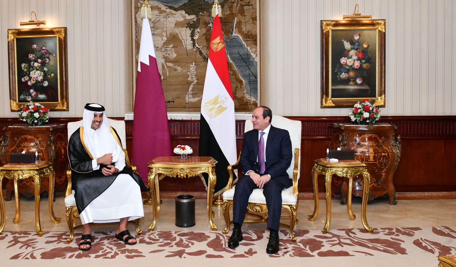 وفيما يتعلق بمستجدات القضية الفلسطينية، أشاد الأمير القطري بالجهود المصرية القائمة لإعادة إعمار قطاع غزة، كما توافقت الرؤى بشأن أهمية العمل على إحياء عملية السلام للتوصل إلى حل عادل وشامل للقضية الفلسطينية، بما يضمن الحقوق المشروعة للشعب الفلسطيني الشقيق وفق مرجعيات الشرعية الدولية.