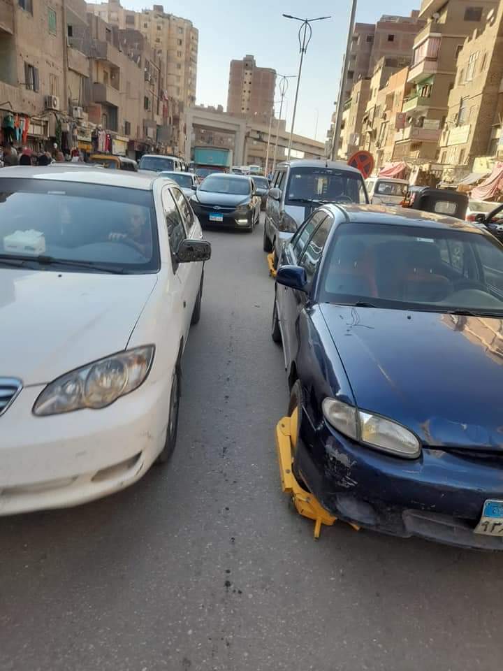 كلبشة السيارات المتعدية على الأرصفة والجزر الوسطى بالطالبية | صور