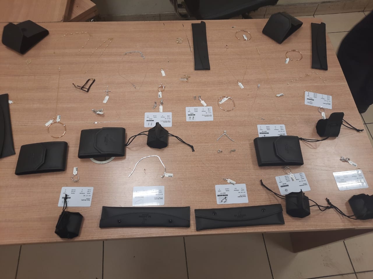 وبتفتيش حقائبه على جهاز الفحص بالأشعة بواسطة المهندسة أميرة إسماعيل علي مأمور الجمرك ومحمد عبد المنعم صالح رئيس القسم واللذين تلاحظ لهما وجود كمية من المشغولات المعدنية، قام محمد الهادي أحمد مدير الحركة المشرف على صالة الوصول بمبنى الركاب رقم ٢ بتكليف محمود أحمد عبد المطلب مأمور الجمرك بتفتيش حقائب الراكب يدويًّا؛ مما أسفر عن ضبط كمية من المشغولات الذهبية المرصعة بالأحجار الكريمة (الألماس) بلغ عددها ٢٨ وحدة.