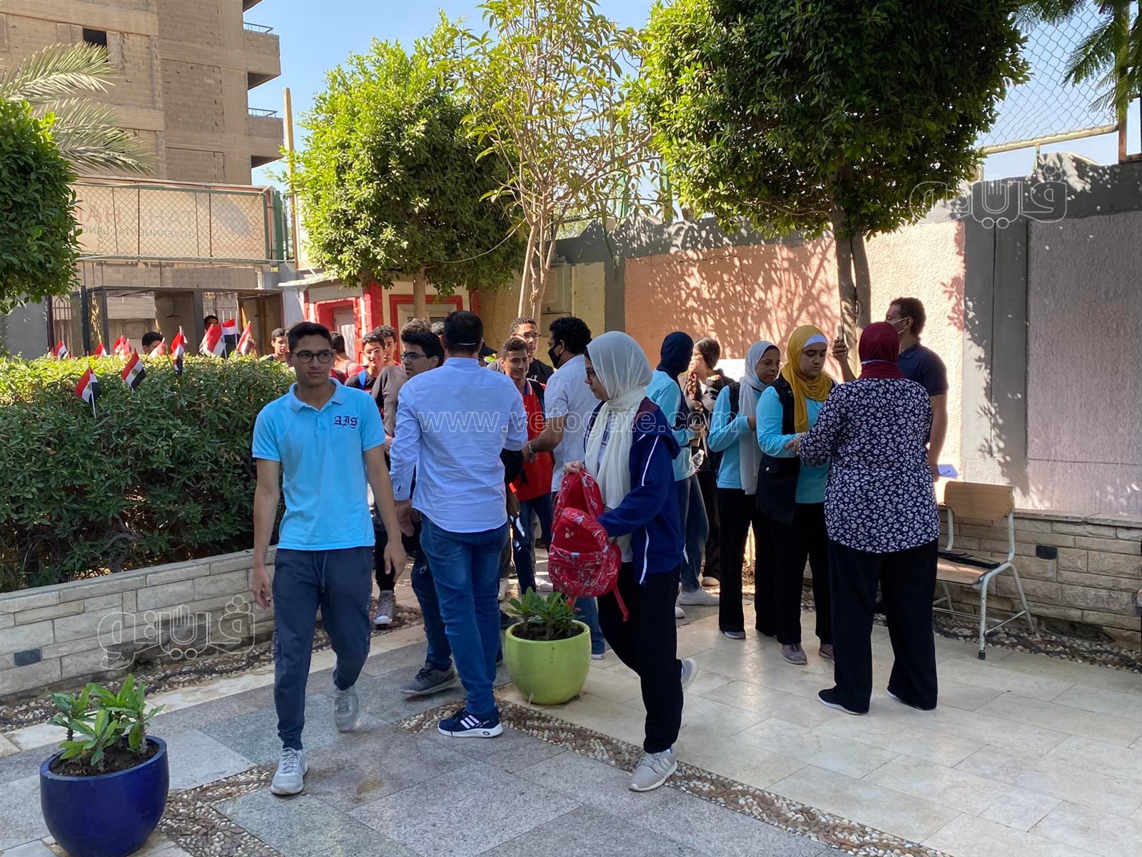 تطبيق الإجراءات الاحترازية على طلاب الثانوية العامة قبل بدء امتحان العربي | فيديو وصور