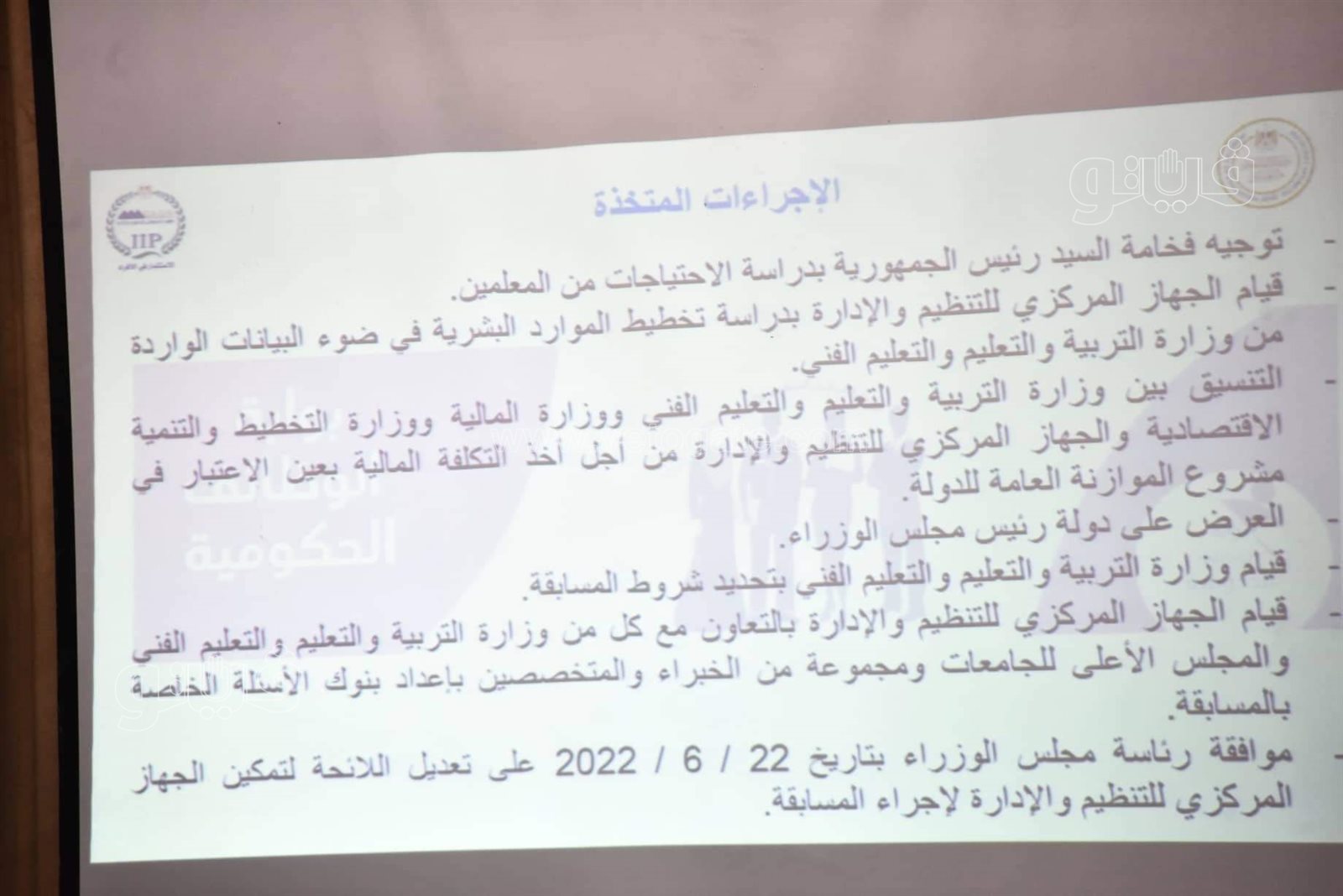 رئيس المركزي للتنظيم والإدارة: الجهاز لديه 11 ألف سؤال لمسابقة الـ30 ألف معلم | صور
