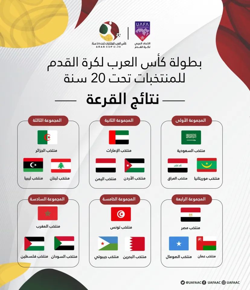 مصر مع عمان والصومال.. 6 مجموعات في كأس العرب للشباب