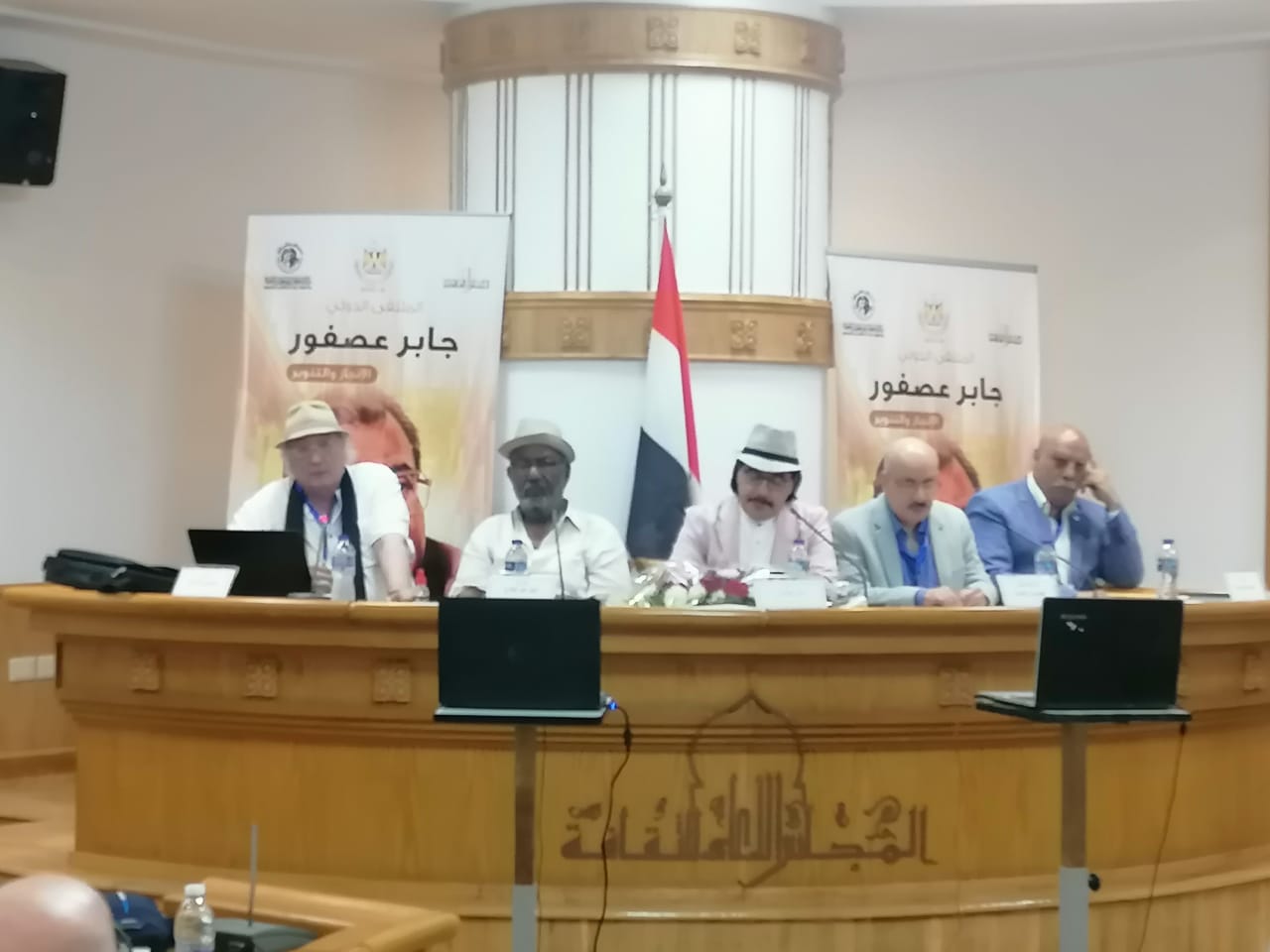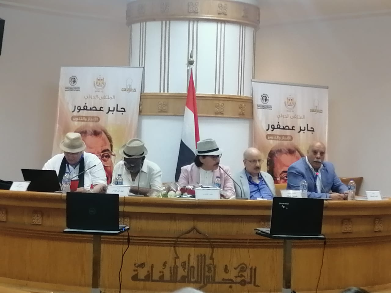 وأدار الجلسة "حسن مدن" من البحرين، وبدأت بكلمة الروائي واسيني الأعرج الذي قال إن خسارة جابر عصفور خسارة قومية وليست مصرية فقط، ولكنه كما وصف لديه شيء من التفاؤل أن الخير في "الخلف" من جيل سوف يحمل تلك الأفكار والرؤى الثقافية ويدافع عنها.