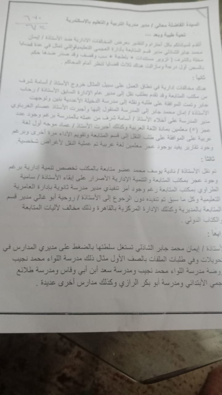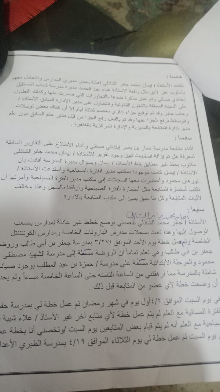 وكشفت عده شكاوي أيضا، عن إستغلال مدير المتابعه في الإدارة لسلطتها والتنكيل بمديروا المدارس والموجهين الذين يعترضوا علي القرارات الخطأ او يقدموا بشكاوي ضدها، مستغله نص الكتاب الدوري رقم ٤ لعام ٢٠٢١ الماده العاشرة بعدم خضوع أدارت المتابعه للإدارات التعليمية او وكيل الوزارة، ويكون توقيع الجزاء والمسألة عن طريق الإدارة المركزية للمتابعه بالوزارة وهو ما جعلها لا تنفذ قرارات او تعليمات صادرة من الإدارة او المديرية وتقوم بتنفيذ ما تراه هي فقط باعتبارها الرقيب والمنفذ والوصي علي الإدارة.