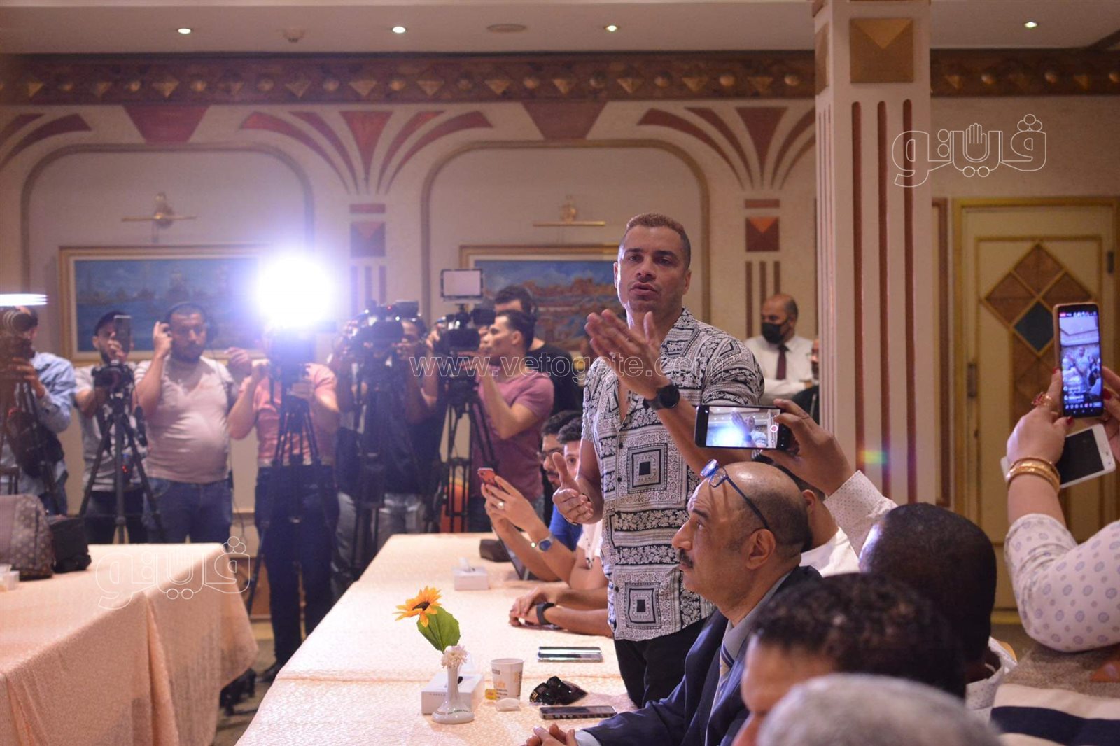 وتأخر المؤتمر بالرغم من وصول هاني شاكر وشاكوش بالموعد، وكشف مصدر من النقابة لـ “فيتو”، أن سبب التأخر هو عدم حضور الفنان سعيد أرتست الذى رفض الحضور بمفرده.