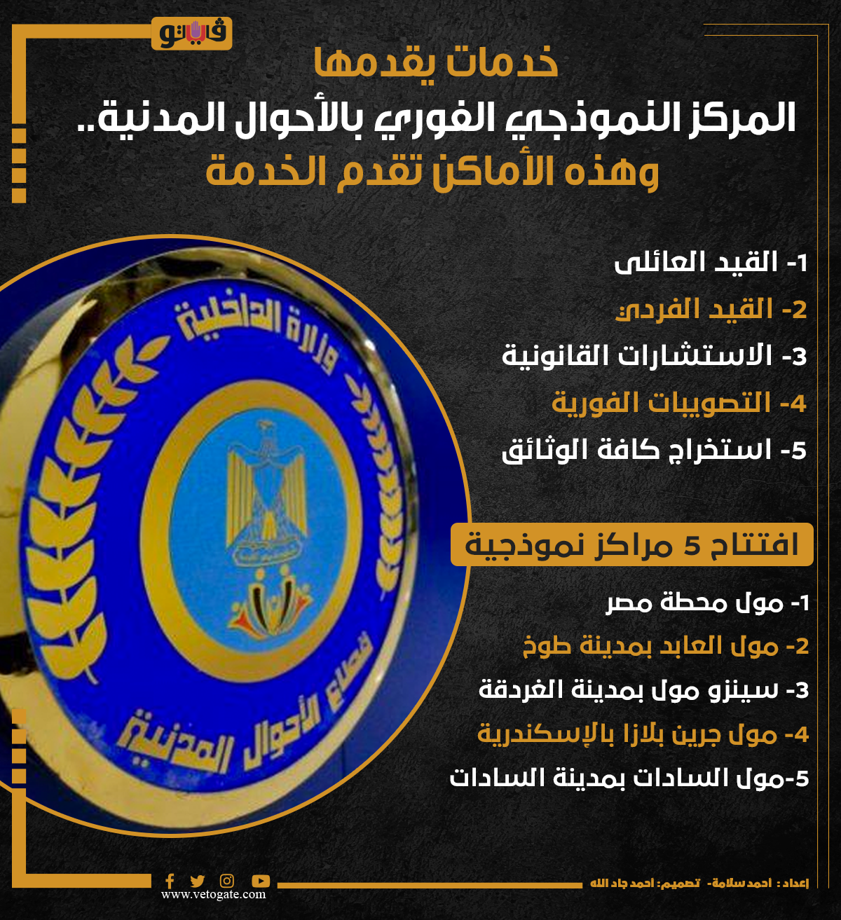 خدمات يقدمها المركز النموذجي الفوري بالأحوال المدنية.. وهذه الأماكن تقدم الخدمة | إنفوجراف الثلاثاء 28/يونيو/2022 - 02:08 م 6/28/2022 2:08:31 PM الأحوال المدنية أحمد سلامة شارك طباعة 18 حجم الخط شارك طباعة القيد العائلي الاحوال المدنية المركز النموذجي مول محطة مصر استخراج قيد عائلى